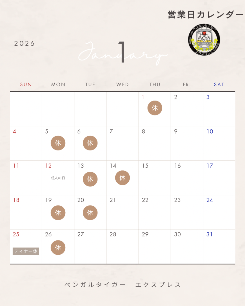 ベンガルタイガーエクスプレス🚃は、本店と同じ味をお財布に優しく、そして早く”エクスプレス”にご提供させていただきます