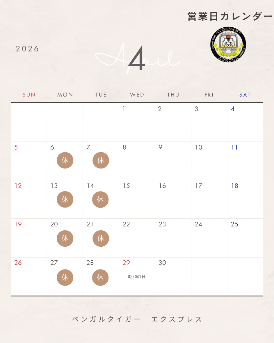 インスタグラムはこちら https://www.instagram.com/bengaltigerexpress/